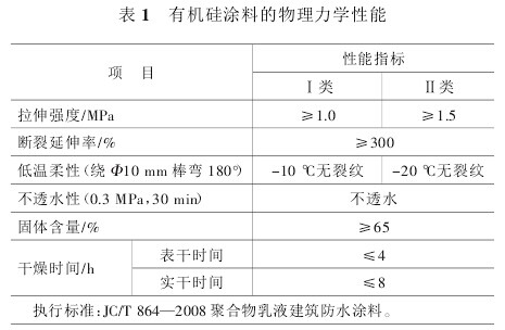1涂料的物理力學(xué)性能及其應(yīng)用彩色有機硅橡膠防水涂料為水乳型合成高分子涂料,防水性能與耐水性能好,抗老化、耐腐蝕,抗拉強度高、延伸率大,與各種材質(zhì)的基層粘結(jié)牢固,環(huán)保性能優(yōu)異,可廣泛應(yīng)用于一般屋面(SQ型涂料)、金屬屋面(SQ-101建筑外墻(SQ-102涂料)、地下工程(SQ-103涂料)以及水池等。其物理力學(xué)性能,見表1。