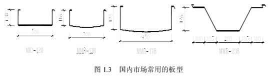 拱型槽板的曲率大小就是靠槽板上橫向小波紋的深淺來調(diào)整的。雙向波紋徹底改變了鋼板的力學(xué)性能,第一步軋制成的槽形波紋極大地提高了鋼板的橫向剛度,是結(jié)構(gòu)承載力的根本所在,而第二步軋成的橫向小波紋則可提高鋼板的局部穩(wěn)定承載力,增強(qiáng)結(jié)構(gòu)縱向抗彎剛度,突出結(jié)構(gòu)殼體受力特性。但橫向小波紋無疑削弱結(jié)構(gòu)跨度方向的剛度。根據(jù)槽板橫截面形狀的不同可將這種結(jié)構(gòu)劃分為不同類型。目前國際上廣為采用的板型是由美國 MIC 公司開發(fā)的MIC-X 系列,主要有 MIC-120 型、MIC-160 型和 MIC-240 型。